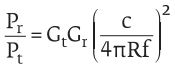 где Pr – мощность на выходе приемной антенны, Pt – мощность на входе передающей антенны, Gr и Gt – коэффициенты усиления приемной и передающей антенн, R – расстояние между ними, f – частота, с – скорость света в вакууме.