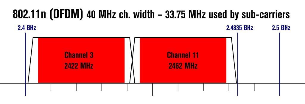 При использовании полосы частот 40 МГц имеем 2 частотных канала:
