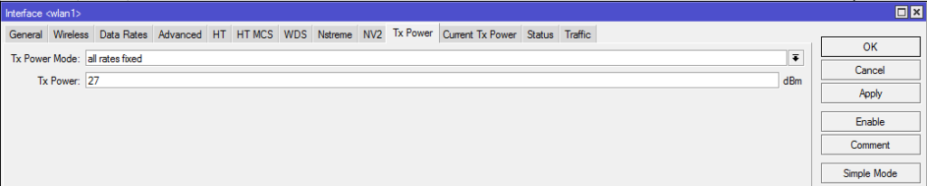 переходим во вкладку Tx Power и указываем вручную мощность передатчика 27 дБм: